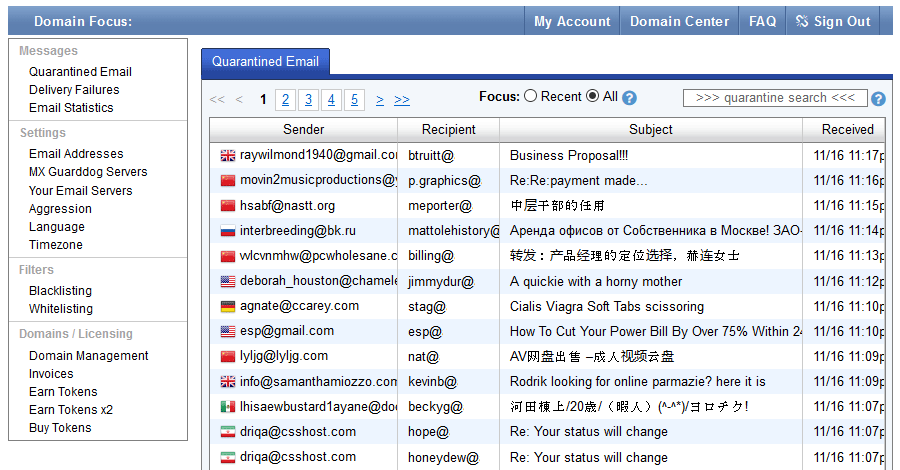 The above screenshots represent only a few of the powerful anti-spam tools we offer. Try our service for free and vanish spam from you organization's inbox.