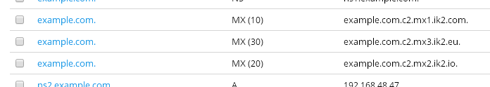 You should end up with three records with a record type of MX as seen in this sample screen shot.