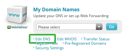 Cliquez sur Éditer DNS à partir des options Mes Noms de Domaines.