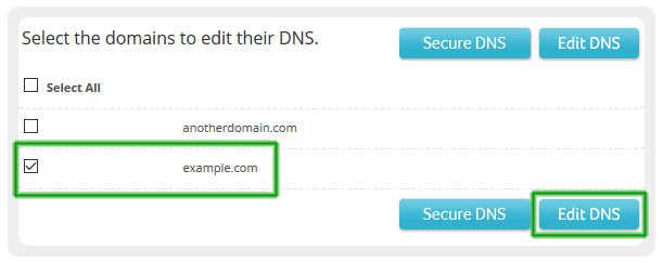 Sélectionnez votre nom de domaine et cliquez sur Éditer DNS pour continuer.